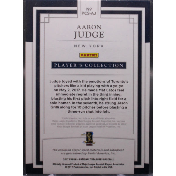 2017 Panini National Treasures Baseball – Aaron Judge PCS-AJ – RPA /99