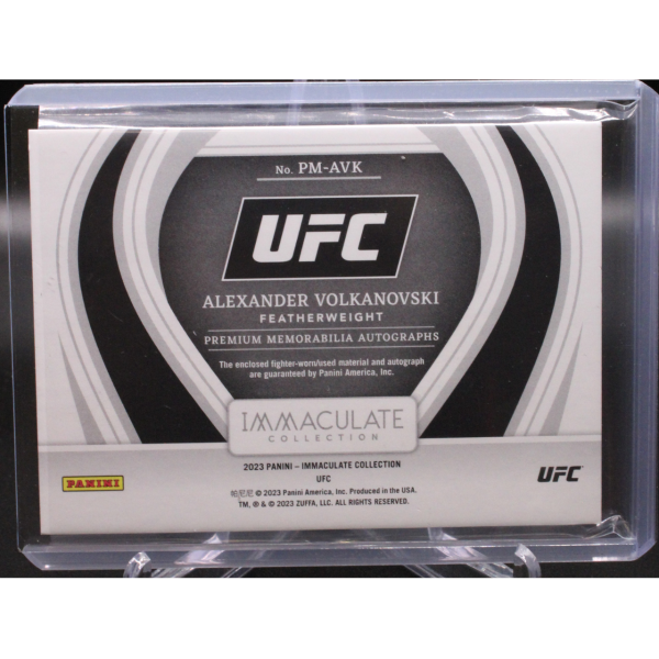 - 2022 Panini Immaculate UFC – Alexander Volkanovski PM-AVK – Premium Mem Auto Acetate
