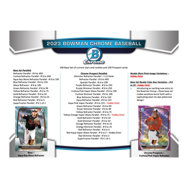– Look for these all-new Bowman Pearl Packs which will fall randomly in boxes of 2023 Bowman Chrome at roughly 1:10 Hobby Cases.