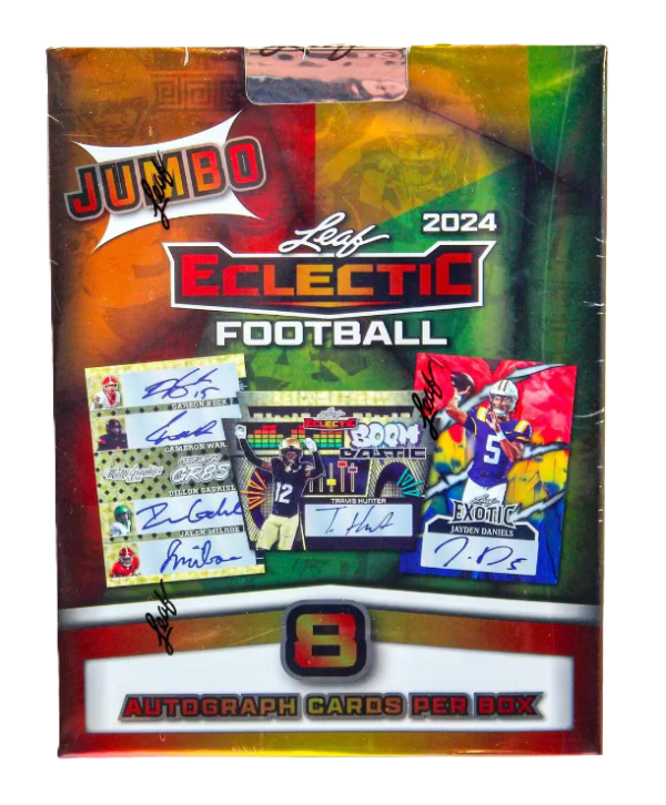 Some of the new additions to 2024 Leaf Eclectic Football include Exotic and X-Centric die-cut signatures!