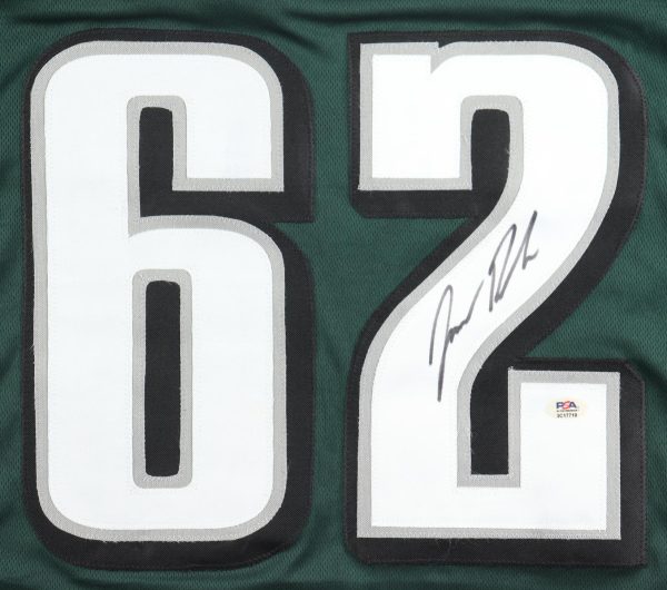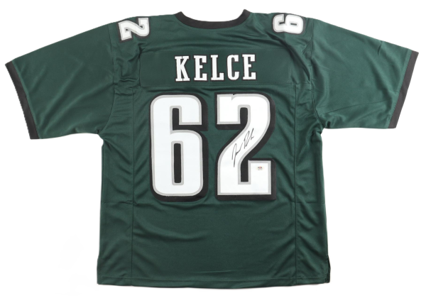 Custom jersey. Everything sewn on, size XL. Hand-signed by retired Eagles Center Jason Kelce.