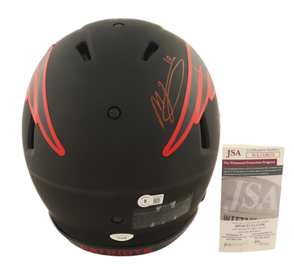 This is your chance to own an authentic Full Size NFL Eclipse Helmet (not a replica). This is a New England Patriots helmet signed by quarterback Mac Jones. The helmet alone is worth well over $500. Add the autograph and you can’t let this go by.