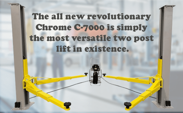 C-7000 7,000 lb. Two Post Lift 7,000 Lb. Capacity Lifting Height 69″ Base Plate Size 18″ x 15″ Lowered Arm Clearance 4.5″ Automatic Locking Ladder System Welded Triple Telescoping Arms (All Four Positions). |